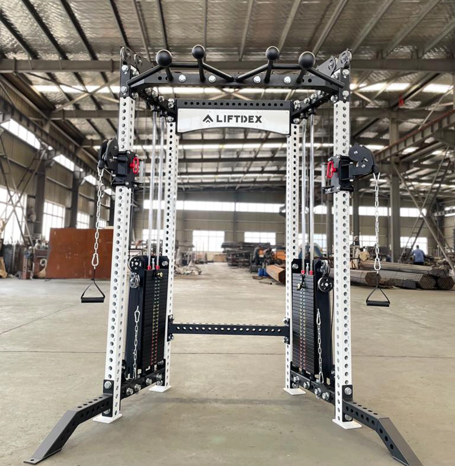 120kg weight stack with 2:1 pulley ratio.